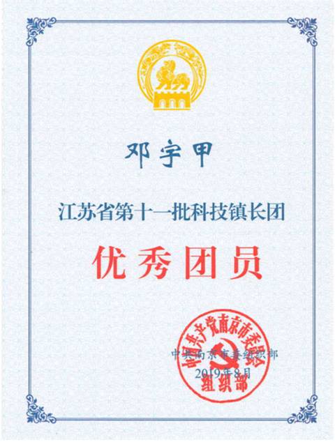我院邓宇甲副教授荣获江苏省第十一批科技镇长团优秀团员称号