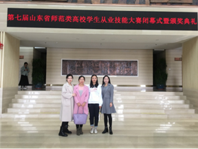 (第七届山东省师范类高校学生从业技能大赛指导教师万延岚副教授(特聘教授)与获一、二等奖同学)