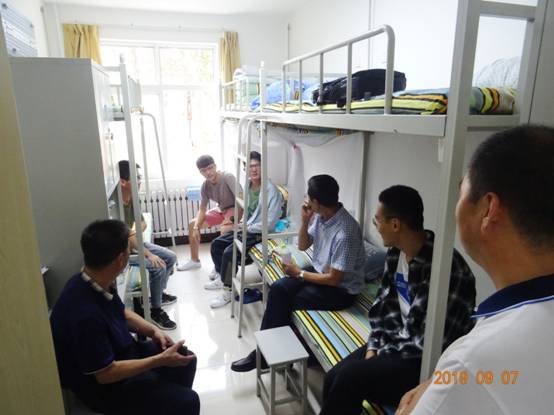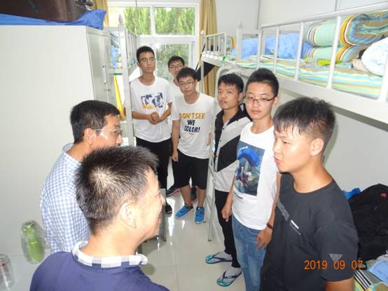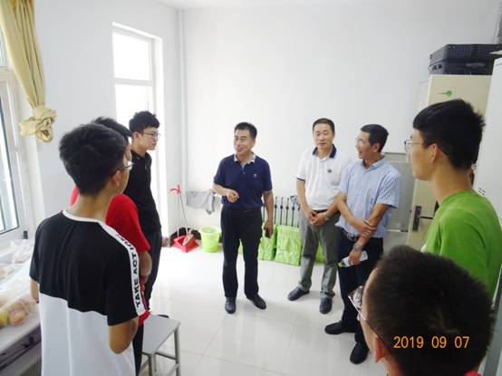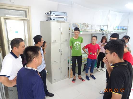 9月7日下午,bat365在线体育登录238名19级新生已经全部入学报到。为进一步掌握新生入住宿舍的具体情况,让新生感受到院领导、老师们对他们的关心与关怀,学院书记赵连章,院长张晓东在学院相关职能部门老师的陪同下深入学生宿舍,走访了部分2019级新生及家长。