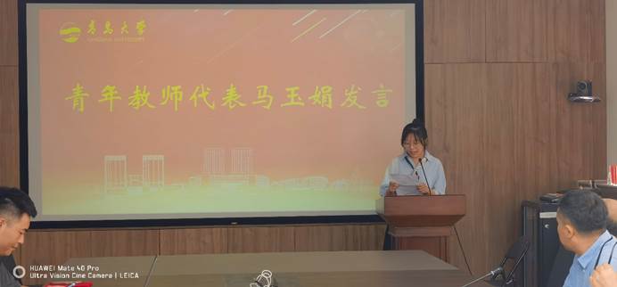 退休教师分别发表了饱含深情的荣休感言,言语中饱含着对教育事业、对学院、对同事和学生的深切热爱与不舍。张慧老师动情回顾了学院的发展历程,从当年的简陋实验室到如今现代化的教学科研设备,她既是见证者,也是建设者。牟春博老师特别感谢了学院的领导与同事们多年来的关心支持与协作配合,明确表示退休后将始终保持与学院的深厚情感联系,只要学院事业发展需要,定当全力支持、继续贡献力量。