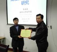 11月25日,国家杰出青年基金获得者、清华大学朱永法教授应学院工业催化研究团队邀请,前来我院进行学术交流并作了“高性能光催化材料研究”学术报告。副院长王宗花教授主持了学术报告会,党委书记张国辉书记向朱永法教授颁发了兼职教授荣誉证书。