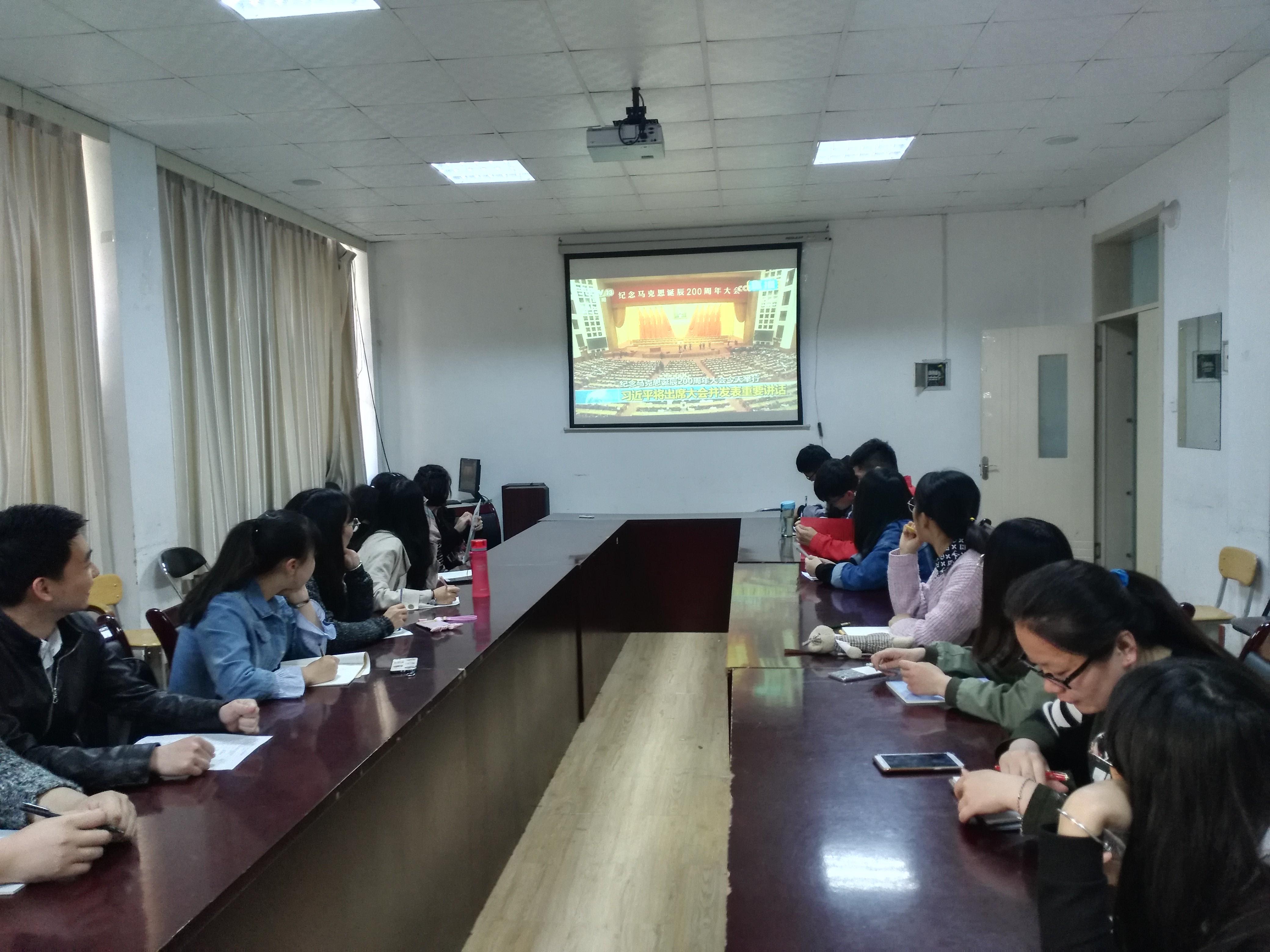 5月4日上午10:00,bat365在线体育登录师生在慎思楼208集中收看纪念马克思诞辰200周年大会,认真聆听习近平总书记在纪念大会上的重要讲话。学院教师代表、学生党员、入党积极分子50余人一同观看了直播。