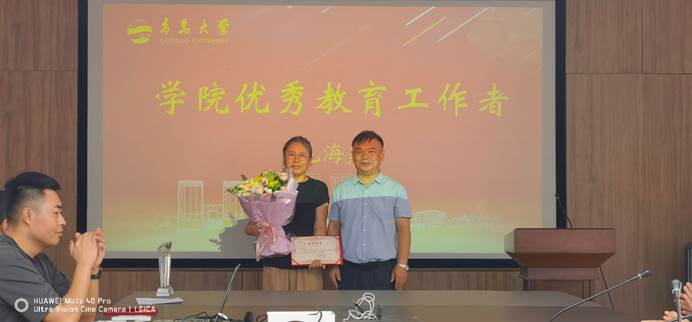 在老教师荣退仪式上,院长毕赛代表学院致辞。她详细介绍了三位退休教师的从教经历、工作业绩等,并代表学院向他们的辛勤工作和无私奉献表示崇高敬意和衷心感谢。她说:“三位老师将最美好的年华奉献给了三尺讲台,学院永远是老师们的家,欢迎常回学院看看!”党委书记姜永杰向退休教师颁发了荣誉奖杯和纪念品,并赠送了鲜花。