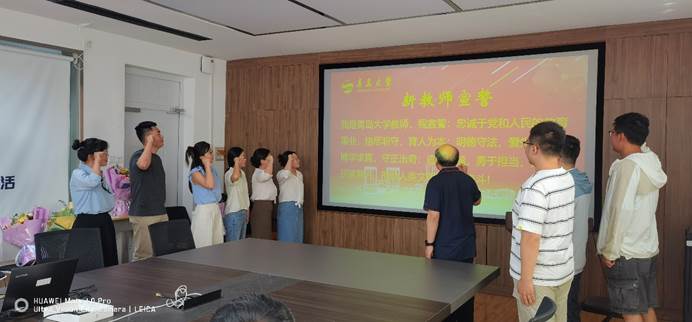新教师入职仪式上,聂兆广老师带领新入职教师庄严宣誓。铿锵誓言,不仅表达了他们对教育事业的坚定理想信念,也传承弘扬了bat365在线体育登录一以贯之的教育家精神。新入职教师一致表示,将主动担当起立德树人的神圣职责,扎根教学一线,积极探索创新教学方法,潜心教书育人,为学院高质量发展贡献自己的智慧和力量。